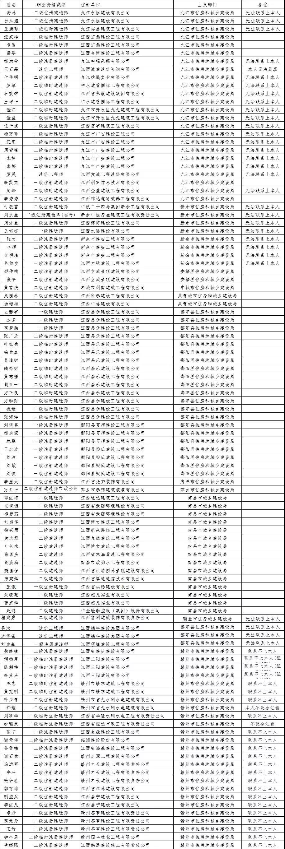 未按省厅“实名制登记”通知(赣建办〔2019〕9号)完成个人信息和聘用关系登记的注册执业人员