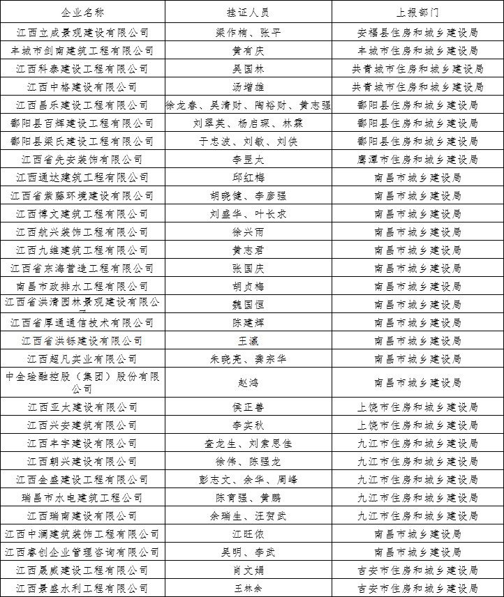 7月18日,江西省住建厅公布新一批“挂证”名单,共31家企业、167名人员。