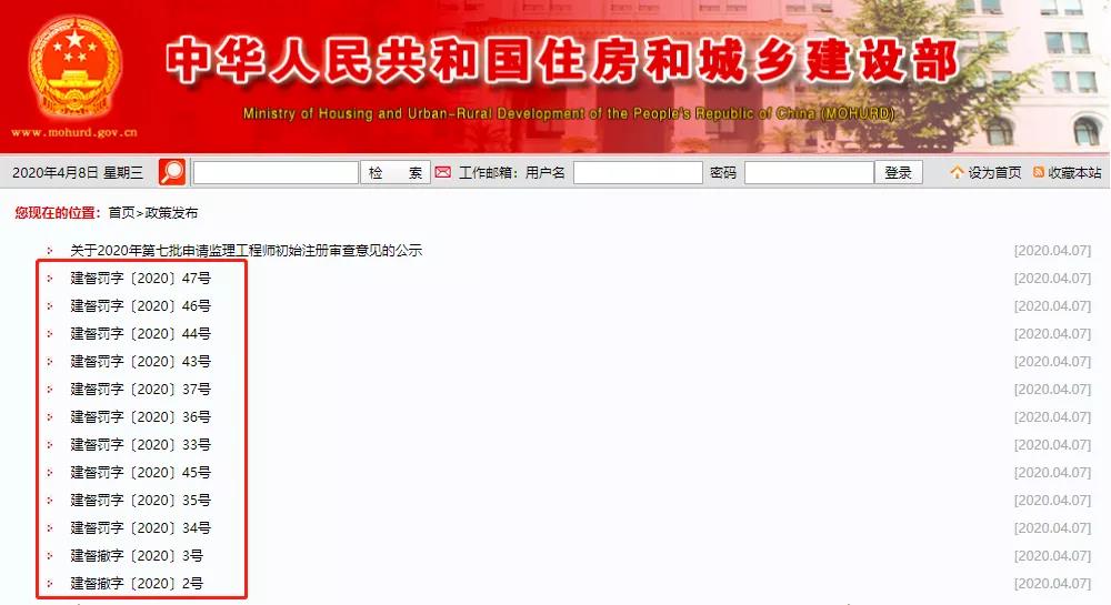 通过官网查询,2020年以来,住建部已经下发59份处罚(点击列表查看):