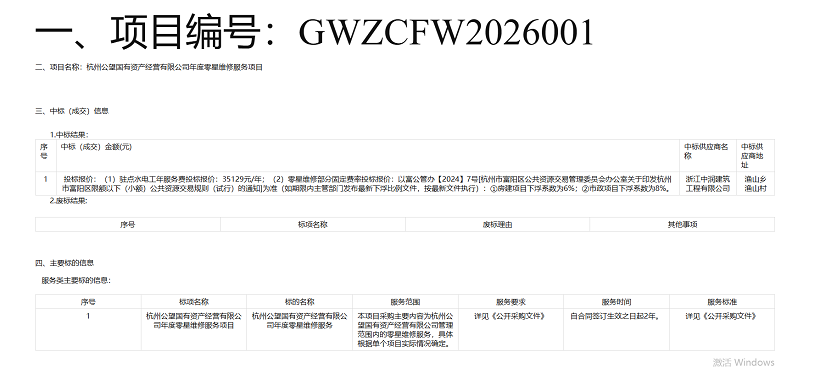 杭州公望国有资产经营有限公司年度零星维修服务项目 中标公示图