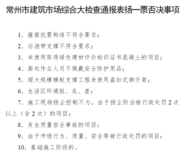 2. 常州市建筑市场综合大检查通报表扬一票否决事项