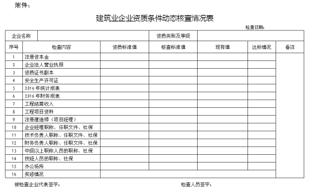 根据住房城乡建设部《建筑业企业资质管理规定》、《建筑业企业资质管理规定和资质标准实施意见》、《关于建筑业企业资质管理有关问题的通知》、《住房城乡建设部关于简化建筑业企业资质标准部分指标的通知》要求,为加强对换证后建筑业企业资质动态监管,规范建筑市场秩序, 2017年8月下旬正式启动建筑业企业资质动态核查。